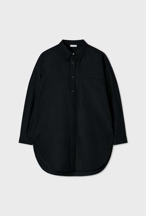 Cotton Silk Round Shirt Black