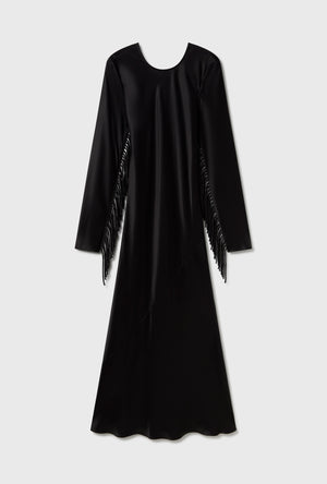 Fringe Full Sleeve Bias Dress Black