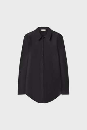 Cotton Silk Round Shirt Black
